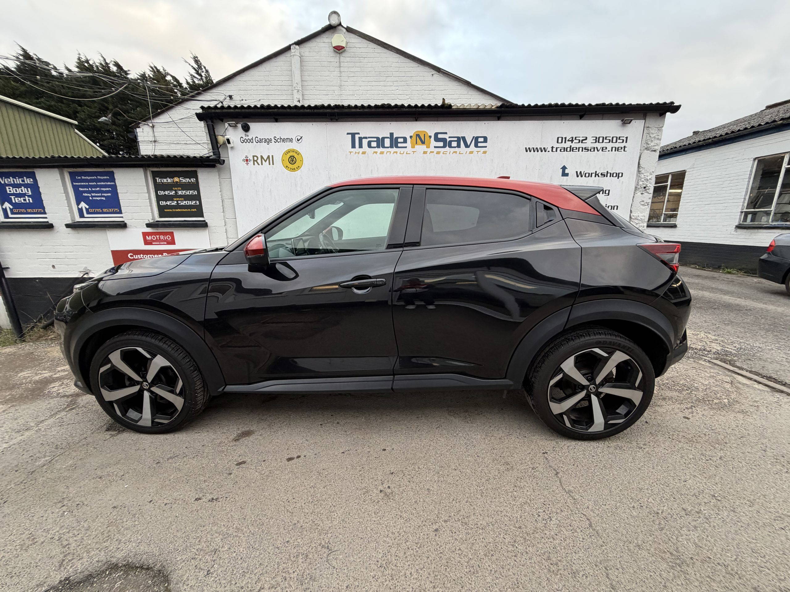 This 2021 Nissan Juke DIG-T Tekna is a well equipped example of this popular compact SUV. It features a 1.0 litre petrol engine and meets Euro 6 emission standards. The Tekna trim level ensures a good selection of notable features, including front parking sensors with parking assistance, a heat pack with heated seats for comfort, and LED headlights for improved visibility. You’ll also appreciate the intelligent key with a push button start for keyless entry and the automatic air conditioning for a pleasant cabin environment. This Juke also benefits from a BOSE sound system with subwoofers. With a fuel economy highlight of 46 miles per gallon, this Juke offers an efficient driving experience. Its low CO2 emissions also indicate it is a more environmentally conscious choice compared to many other vehicles in its class. This combination of practical features, efficient performance, and modern technology makes the 2021 Nissan Juke DIG-T Tekna a compelling option for those seeking a stylish and economical compact SUV. Offering a huge spec and presented in excellent condition throughout this Juke must be seen and driven to be appreciated. Upon sale this Juke will come with a new MOT, service & warranty. Please call us to request your personalised walk around video or to arrange a test drive. Trade N Save Centre – Gloucester’s No. 1. Independent Renault, Dacia & Nissan Specialists.
